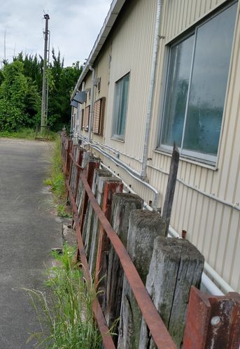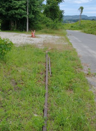 加美駅付近。踏切の警報装置や標識などが残っていた。
